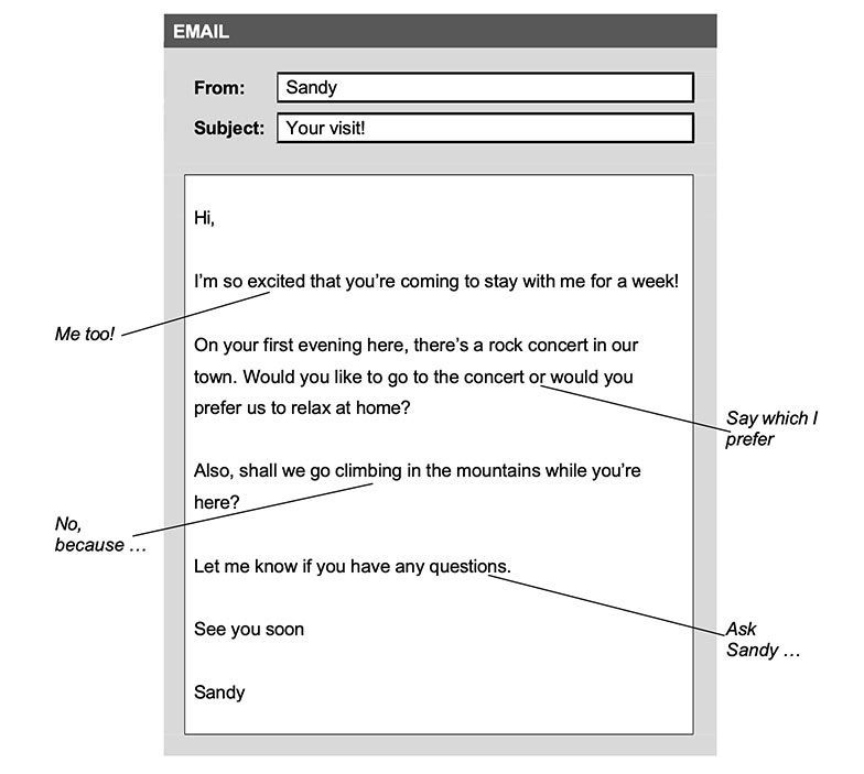Write your email to Sandy using all the notes.